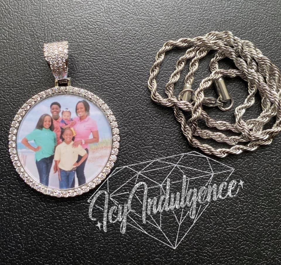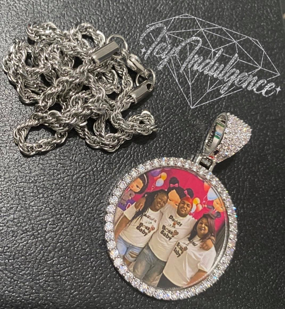 Custom 18k Gold/Silver Photo Medallion pendant with 18k Gold/silver Plated stainless steel Rope Chain.