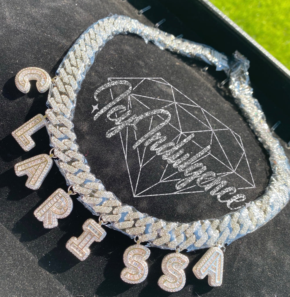 AAA 12MM Cuban Chain with Baguette Initial Letter Pendant.