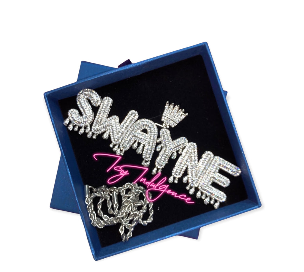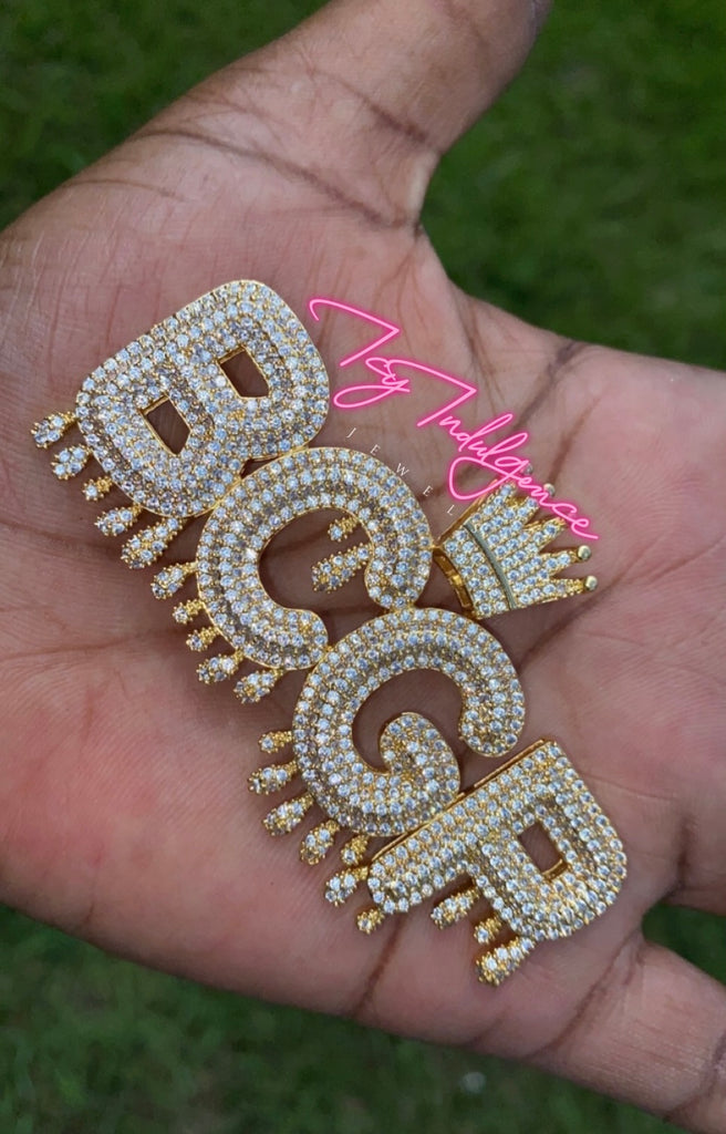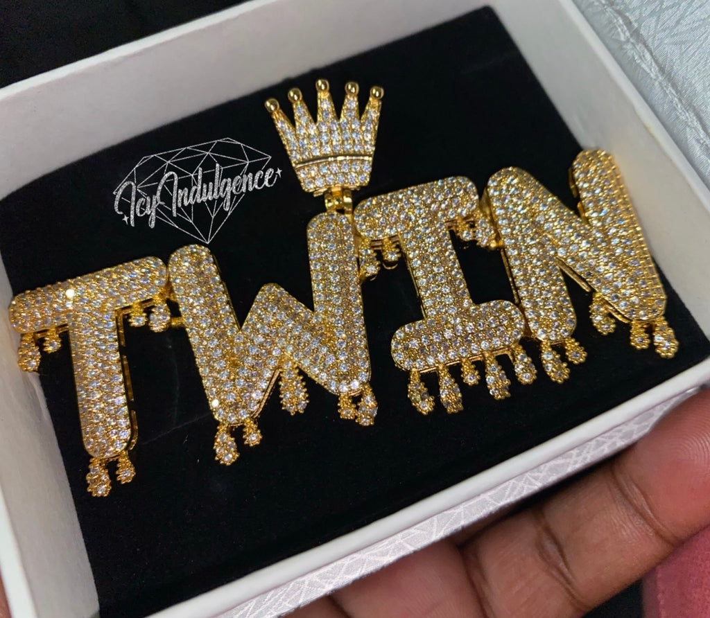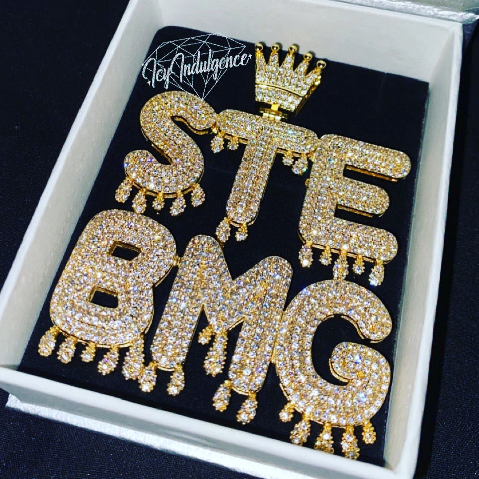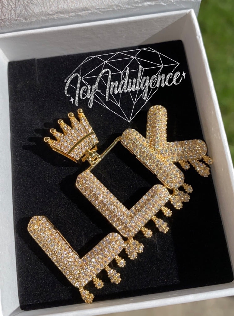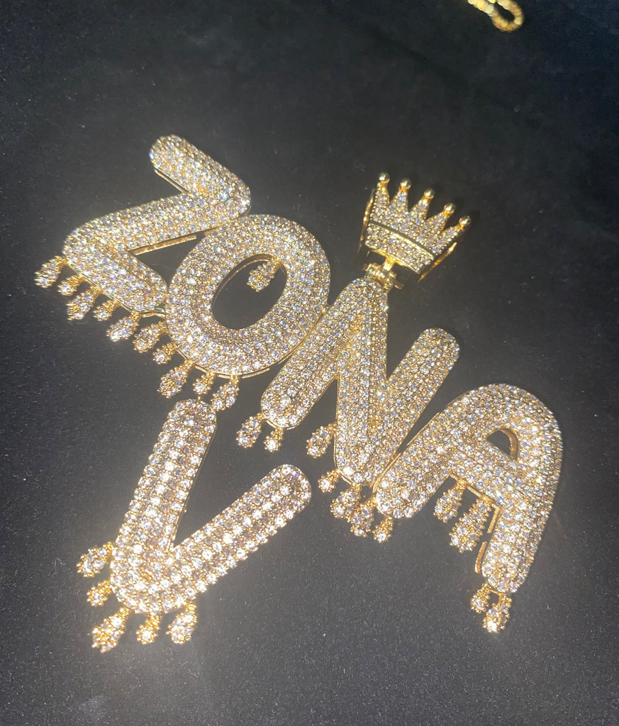 24K Gold Drip + Crown Bale pendant, & stainless steel chain. AAA+ CZ Diamonds